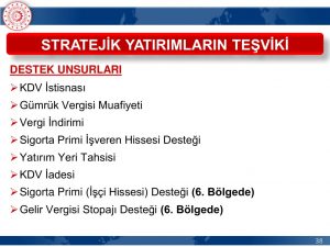 - Katma Değer Vergisi İadesi: Sabit yatırım tutarı 500 milyon Türk Lirasının üzerindeki Stratejik Yatırımlar kapsamında gerçekleştirilen bina-inşaat harcamaları için tahsil edilen KDV’nin iade edilmesidir.