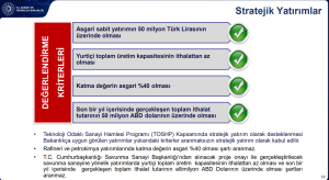 Stratejik yatırımlar için ayrıca, yatırım konusu ile ilgili olarak sektörel, mali ve teknik analizlerin yanında 10 uncu maddede belirtilen kriterlerin her birinin yerine getirildiğini tevsik eden bilgi, belge, hesap ve tabloları içeren fizibilite raporu.