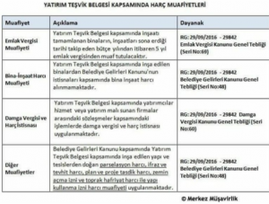 İmalat sanayii ile turizme yönelik yatırım teşvik belgesi sahibi mükelleflere belge kapsamındaki inşaat işlerine ilişkin mal teslimleri ve hizmet ifaları 31/12/2025 tarihine kadar katma değer vergisinden müstesnadır.
