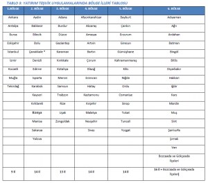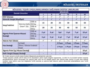 İllerin ve bölgelerin sosyo-ekonomik gelişmişlik sıralamasına göre bölgesel teşvikler verilmektedir.